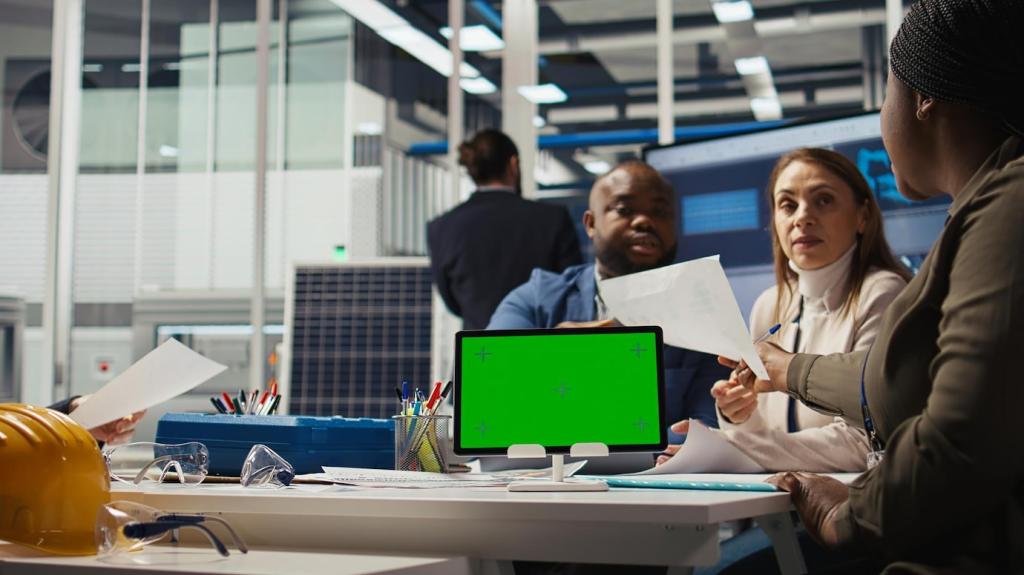 Integrierte Photovoltaik-Module in Fassaden und Brüstungen erzeugen Strom, ohne die Architektur zu dominieren. Farbig veredeltes Glas, geeignete Verschaltung und angepasste Unterkonstruktionen ermöglichen elegante Lösungen. Erzählen Sie uns von Projekten, in denen Gestaltung und Ertrag überzeugend zusammenfanden.